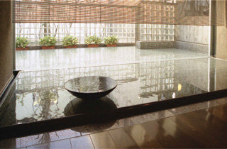 静かな日本的精神性が感じられる空間に造られています。壁はわらすさを混ぜた素朴な土壁で出来ています。座席は80席。